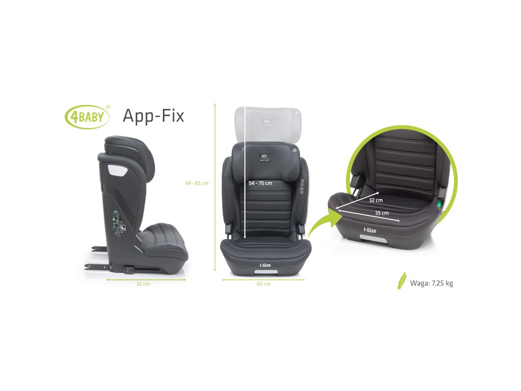 Táto autosedačka 4BABY APP-FIX je moderná a bezpečná voľba pre staršie deti, navrhnutá pre deti
