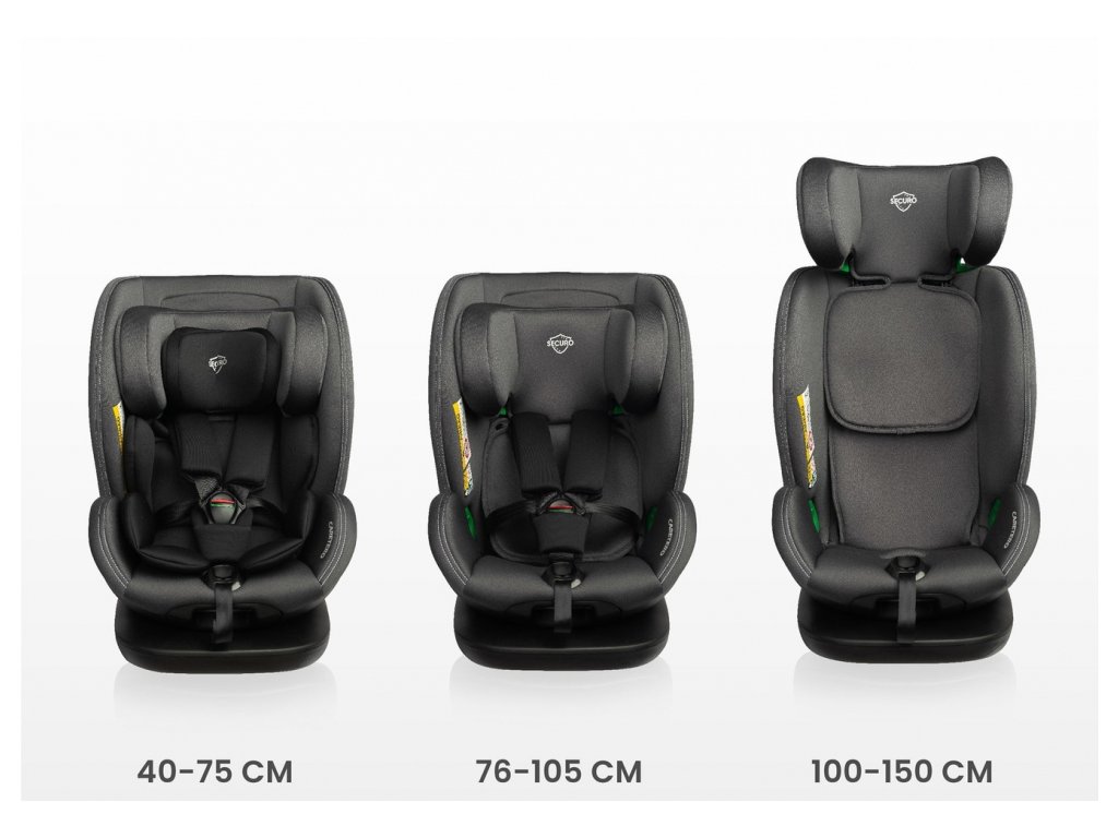 Autosedačka Securo 40-150 cm - Táto autosedačka Securo je spoľahlivým a bezpečným spoločníkom na cesty, ktorý rastie spolu s vaším dieťaťom. Navrhnutá je pre širokú výškovú kategóriu od 40 do 150 cm, čo znamená, že ju využijete od narodenia až do 12 rokov. Spĺňa najnovšiu a najprísnejšiu európsku bezpečnostnú normu i-Size (UN ECE R129/03), vďaka čomu poskytuje najvyššiu úroveň ochrany.