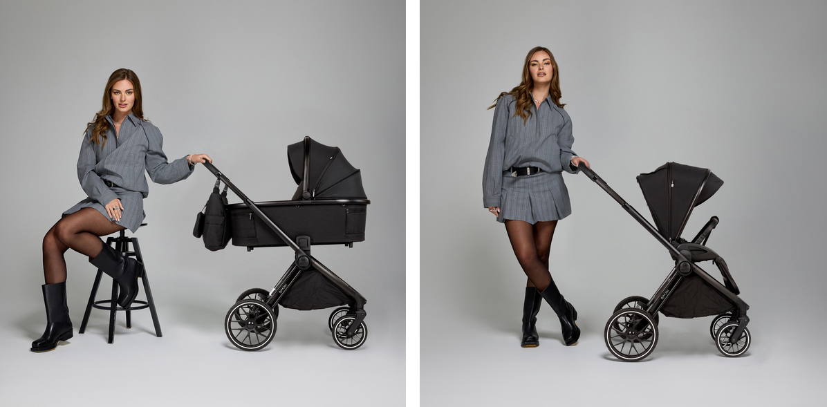 komfort pre dieťa aj rodičov. Vo verzii Velvet má kočík rám vo farbe klasických čiernych a elegantných doplnkov vo farbe tmavého laku.