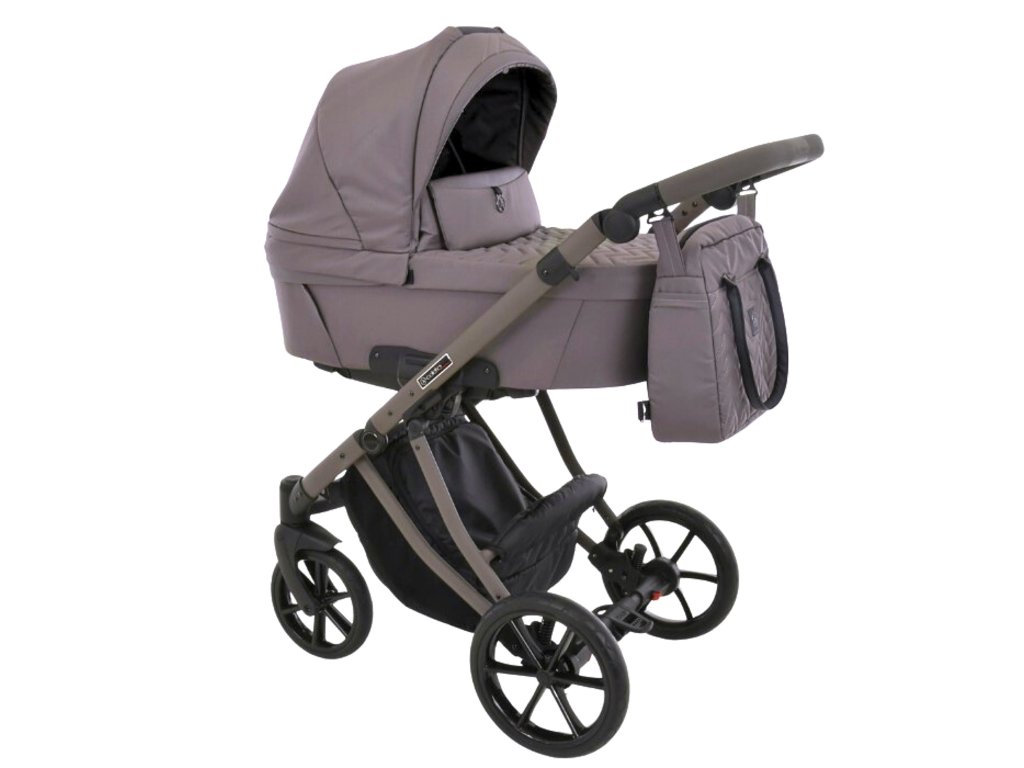 mestského dizajnu. Decentné, teplé tóny béžovej vytvárajú harmonický základ pre modernú siluetu kočíka a zdôrazňujú jeho prémiové