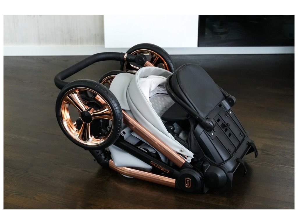 kočíka. Zároveň je konštrukcia dostatočne pevná a bezpečná pre vaše dieťa. Adbor Loretto má štýlový vzhľad s modernými líniami a často
