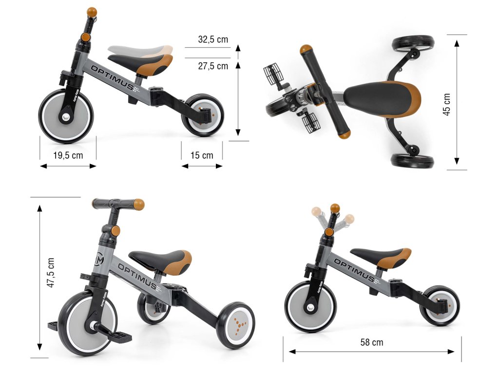 Odrážadlo Milly Mally Optimus 3v1 - Tento multifunkčný spoločník kombinuje tri dôležité funkcie v jednom štýlovom balení: chodítko, odrážadlo a jazdiace autíčko. Je navrhnutý tak, aby vaše dieťa zabavil a zároveň bezpečne podporil jeho motorické zručnosti, rovnováhu a koordináciu.