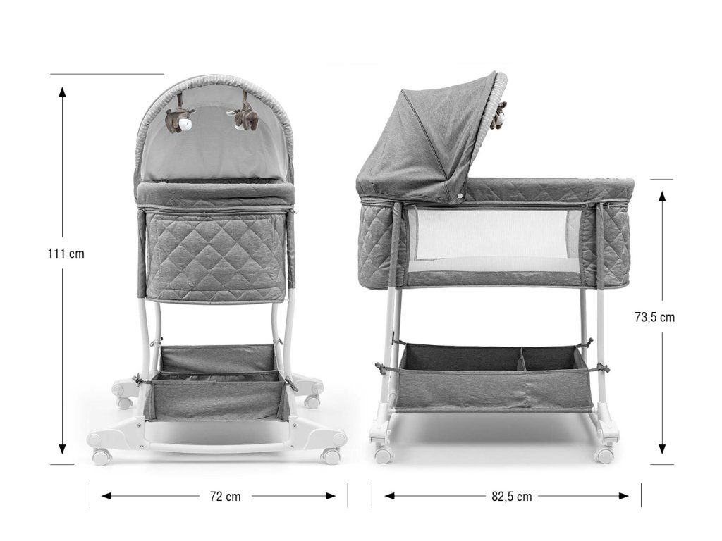 - Výška od podlahy s krytom kolísky: 107 cm.