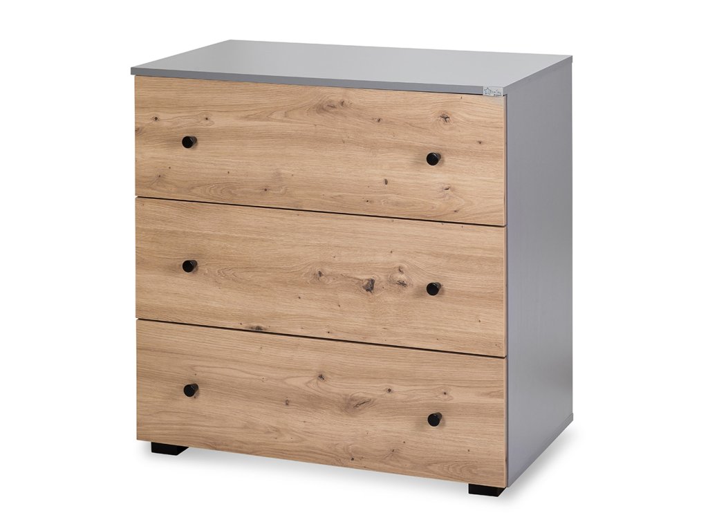 Komoda KLUPS s prebaľovacím pultom PAULINE grafit dub - je ideálnym stredobodom každej detskej izbičky. Kontrast tmavého grafitu a štruktúry dubového dreva vytvára nadčasový dizajn, ktorý nevyjde z módy ani po rokoch.