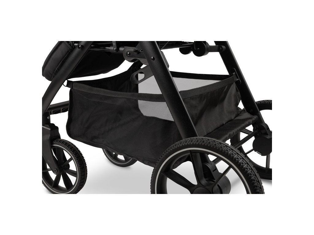 nad dieťaťom, ergonomická rukoväť potiahnutá ekokožou s možnosťou nastavenia sklonu, zadné vrecko