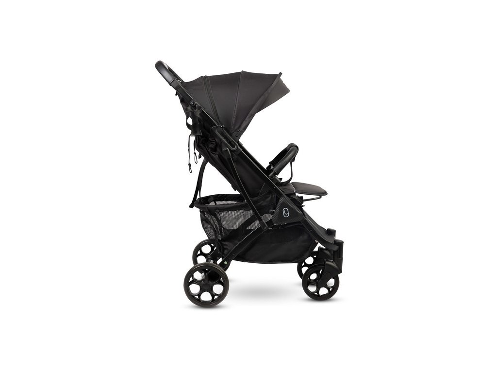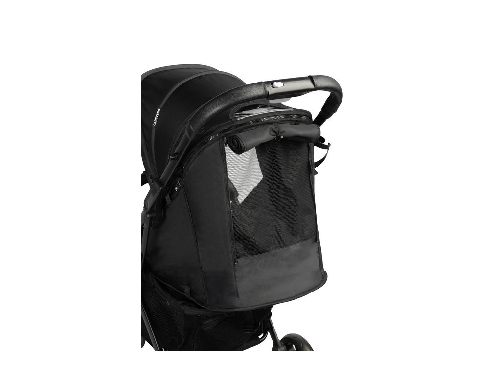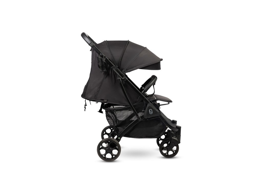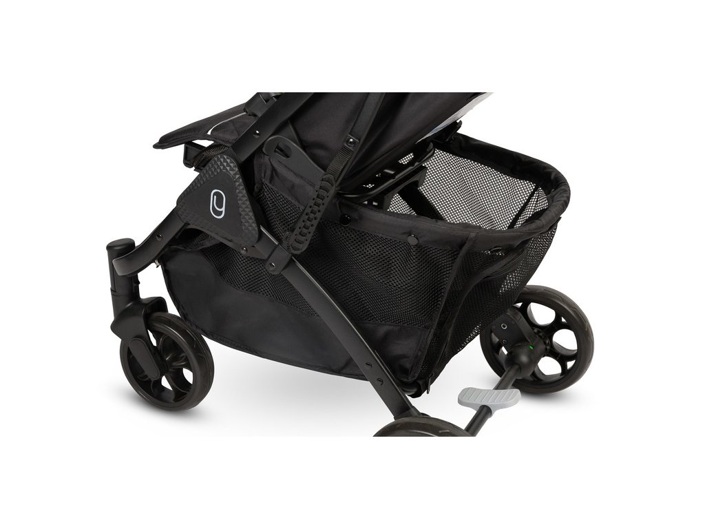 - Dodatočný držiak na fľašu, praktické vrecko na drobnosti a hlboký úložný kôš pod kočíkom.