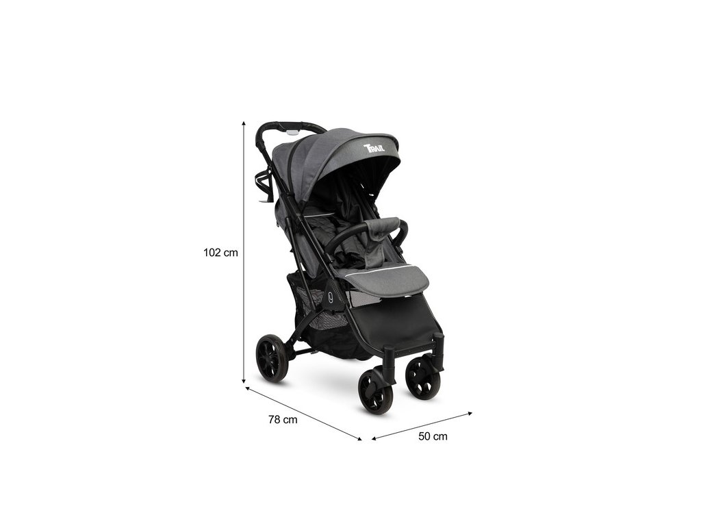 - Rozmery rozloženého kočíka: 78 × 50 × 102 cm.