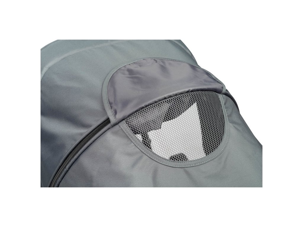 a vetrom a súčasťou sú aj ochranný plášť pre nohy a dažďová fólia. Predná tyč a 5-bodové bezpečnostné
